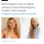 A year and a half ago, American Eagle’s lingerie line, Aerie, stopped retouching, airbrushing, and Photoshopping the models in its ads. The fashion line also quit hiring girls with supermodel bodies in favor of those with natural-looking figures. If the models had any tattoos, beauty marks, or blemishes those would now remain visible, too. These changes helped Aerie’s sales jump 10 percent.