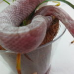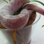 Kitty Junior likes the tiny prop plants on the light shelf more than any of the other babies during photos time. She’s my shyest corn snake and takes a lot of time to warm up to new situations or new things in her environment, but she seems to gravitate towards live plants.