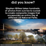 Stephen Wilkes takes hundreds of photos from sunrise to sunset to create composite images that encapsulate an entire day at different US National Parks.