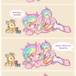 To pre-empt the questions: Otter Pop is the biological daughter of Paper Stars and Glittering Cloud. She’s half-pegasus, half-bat. She is not adopted. She was conceived by magic and carried by Glitter. I won’t go into too many details there, because it’s kind of gross and not relevant to the story.
