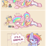 During their teething years (usually as little as a month after birth), I believe bat foals are very bitey, “attacking” anything put in front of their faces instinctually. Kind of like kittens play-fighting. Otter Pop is half bat, and she has fangs, so she bites things… usually Glittering Cloud, much to Glittermom’s annoyance. Half-bats are very rare, so there’s a lot of new experiences waiting for these two. Paper grew up in the wilderness alone, so she basically knows nothing about babies anyway. They’re terrible. Whose idea were these?